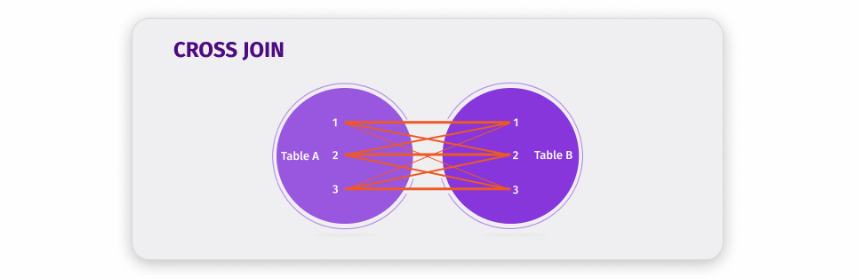 CROSS JOIN : Birinci tablodaki bir kaydın diğer tablodaki tüm kayıtlarla eşleştirir. Yani iki tablonun çapraz çarpımını alır.